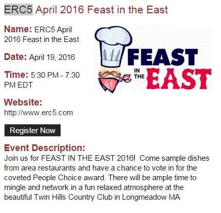Nancy L. Connor, Executive Director Feast in the East-Please come and celebrate a fun filled night of signature dishes served by Chefs from our Area's Top Restaurants! Vote for YOUR Favorite! Feast in the East ERC5 April 19, 2016